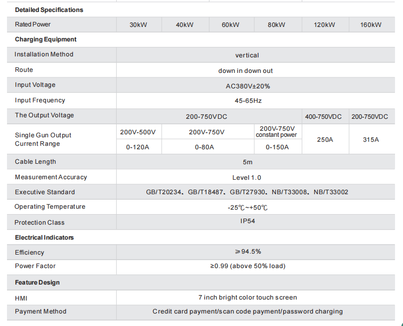 1) เครื่องชาร์จสถานีพลังงาน: 30kW ~ 160kW